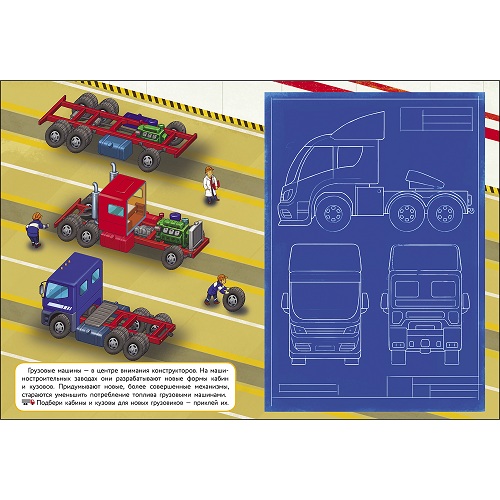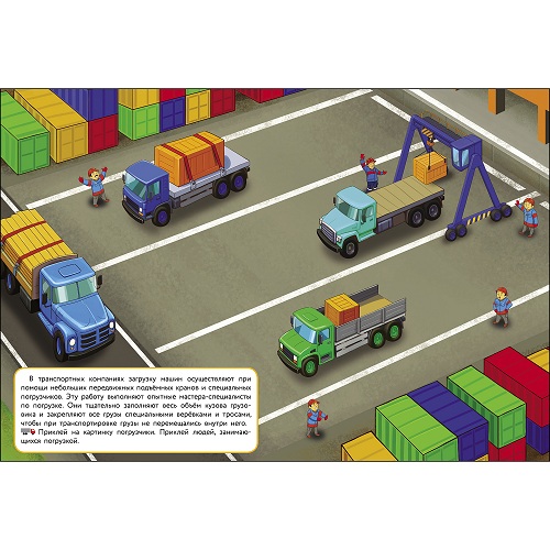 У каждого мальчишки есть грузовик. Ведь играть в него так интересно! А смотреть на настоящие грузовики и самосвалы еще интереснее! Познакомься поближе с этими большими, мощными машинами, а наши многоразовые наклейки помогут тебе в этом.