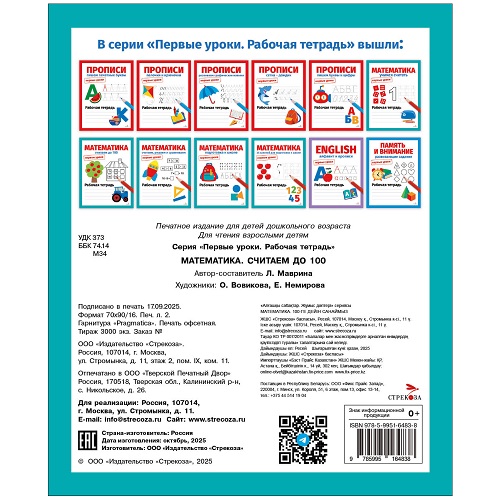 Рабочая тетрадь «Математика. Считаем до 100» предназначена для занятий с детьми дошкольного и младшего школьного возраста. В тетради представлен комплекс упражнений, который поможет в увлекательной игровой форме освоить счёт до 100.