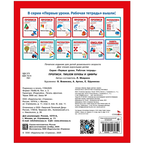 Рабочая тетрадь «Прописи. Пишем буквы и цифры» предназначена для занятий с детьми дошкольного возраста. В ней представлены упражнения на отработку навыков написания букв и цифр.