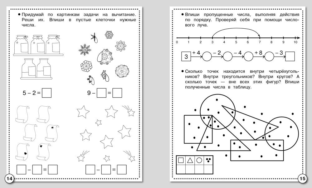 Для начинающих (5–6 лет) – простые задания на счёт и графику.